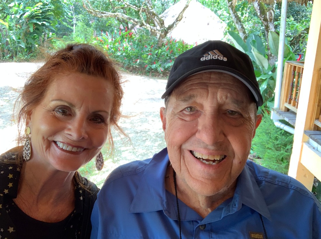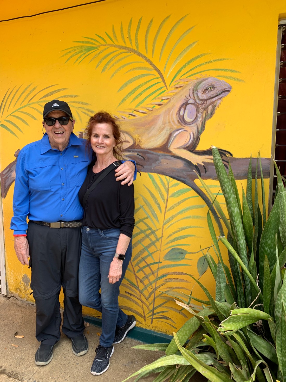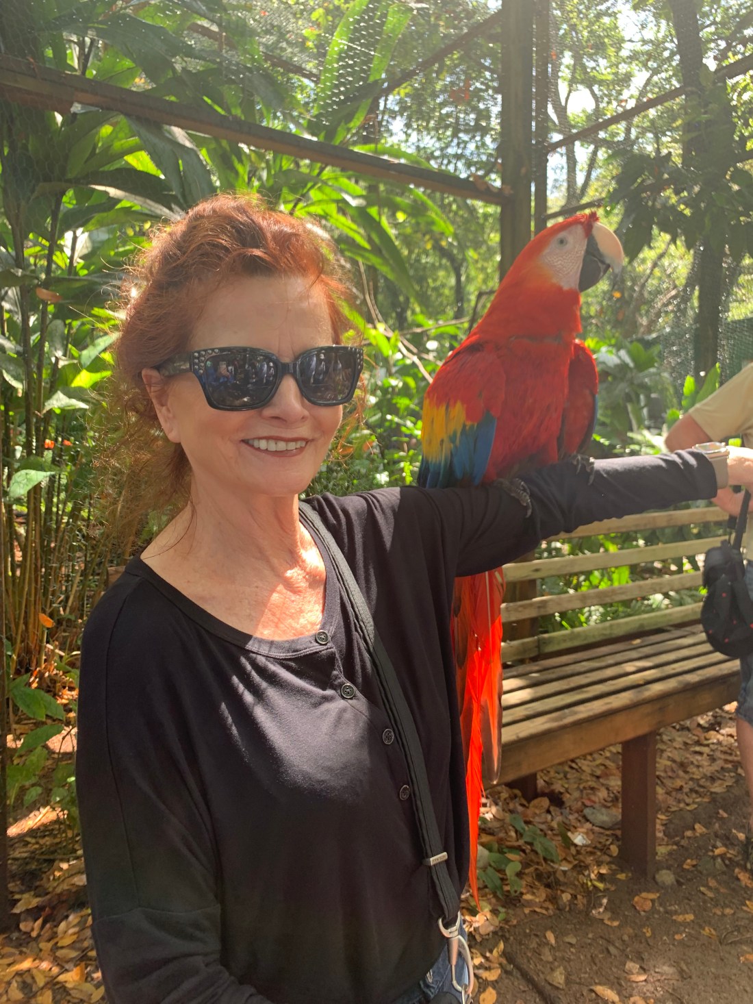 We drove for about 15 minutes to the Mayan-Eden Eco Park which is home to rescued tropical birds and animals and a butterfly habitat. We were able to even get a picture taken with a bird on Patricia’s arm and on Jim’s head.