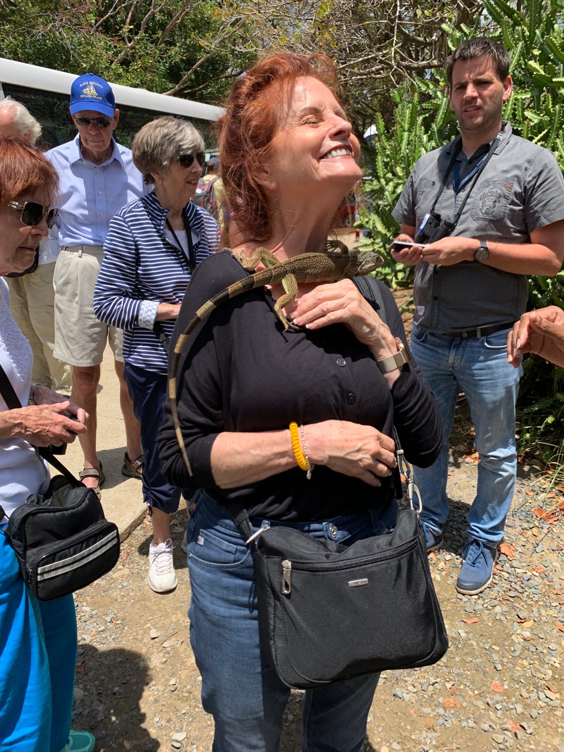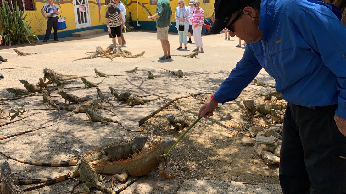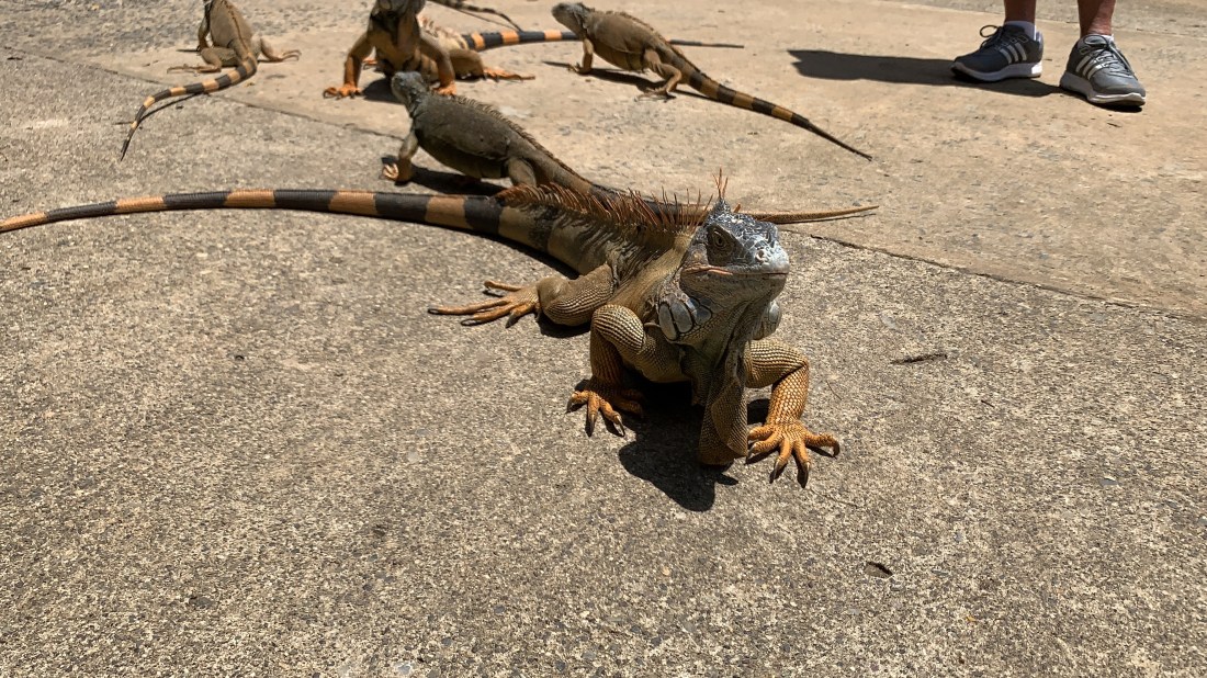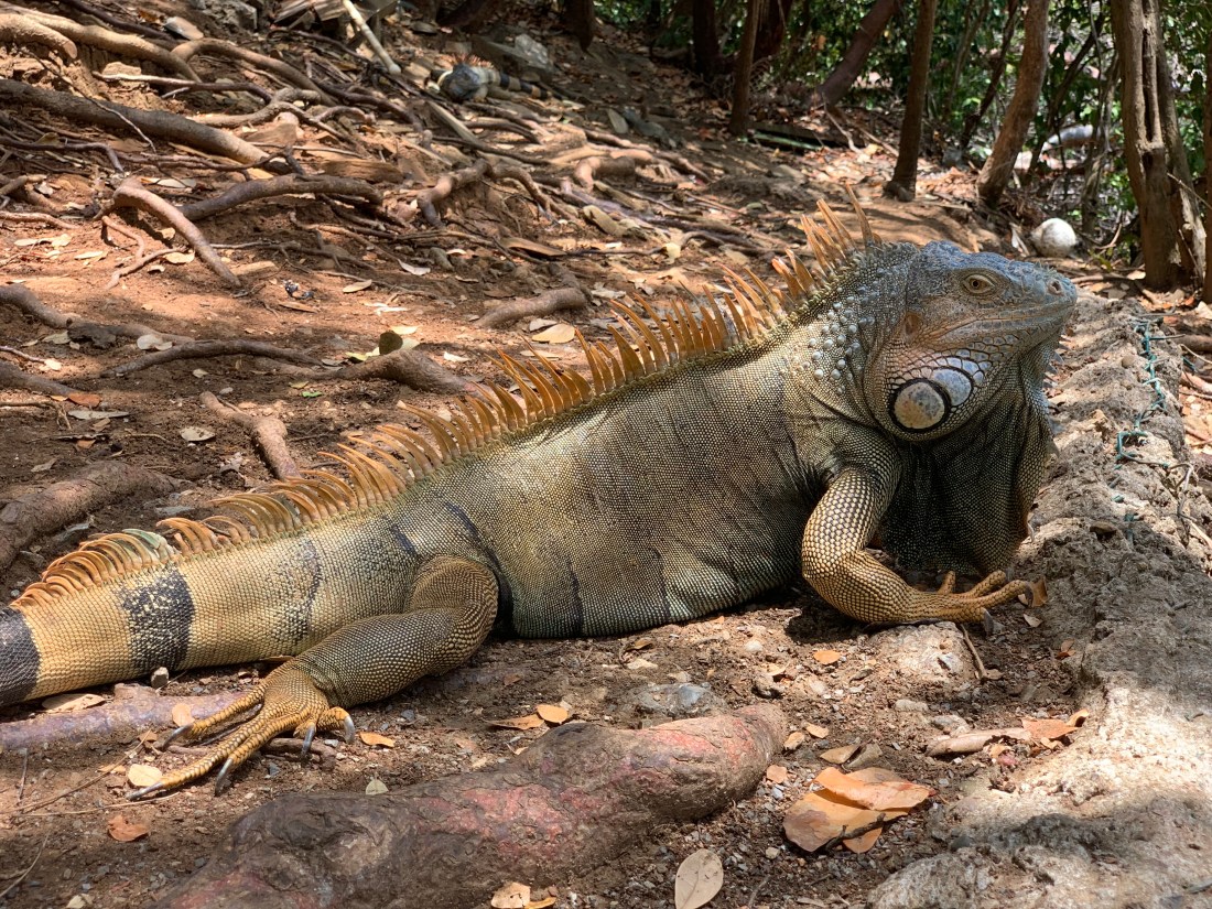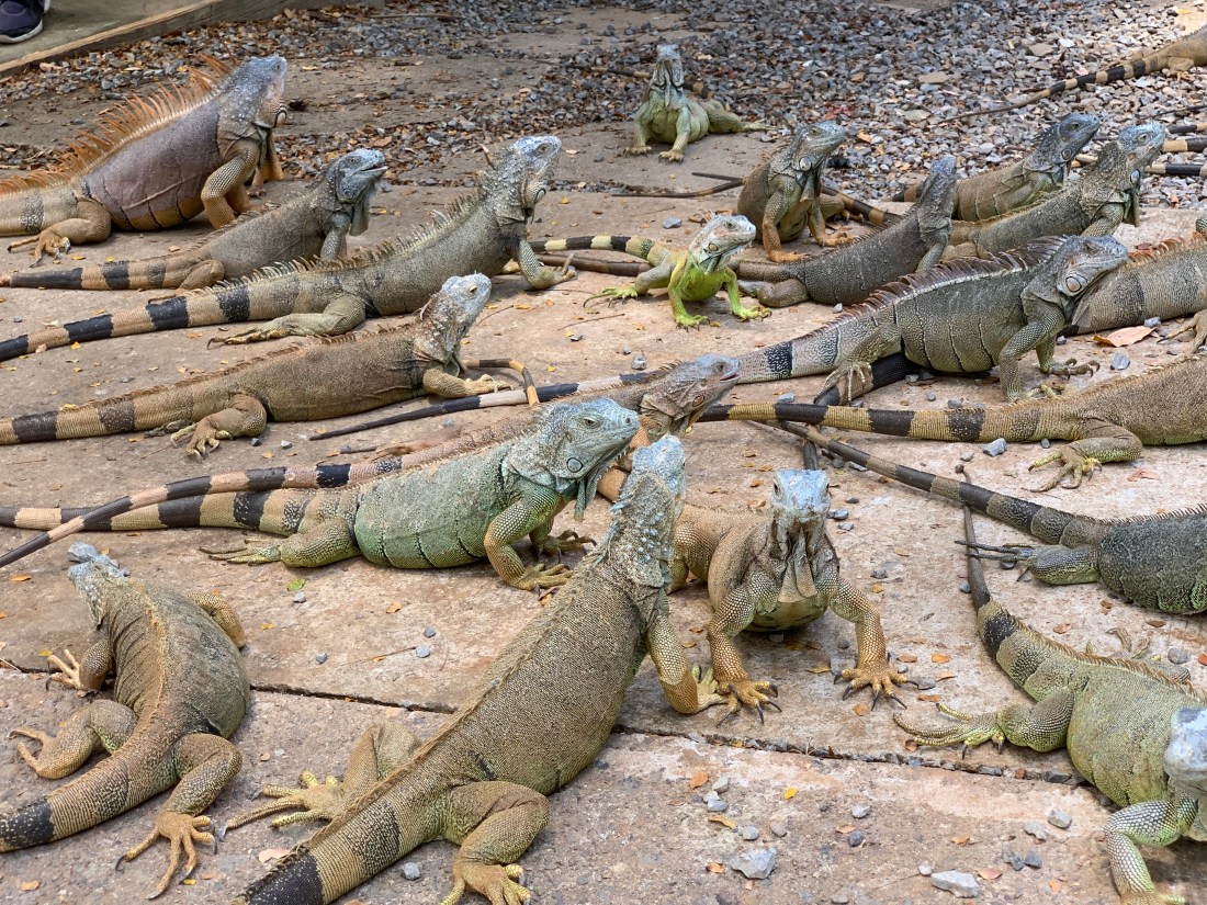 Our last stop was a look at the iconic iguana, which we saw in abundance at the Iguana Hideaway. It was an excellent venue to observe these prehistoric looking reptiles, as iguanas are threatened on Roatan from loss of habitat and being captured for the pet trade. We watched the iguanas basking in the sun, lounging in trees and munching on vegetables. Some of the iguanas were over 3 feet long, and while they looked imposing they were really quite passive unless you were feeding them a big leaf and they all went for it.