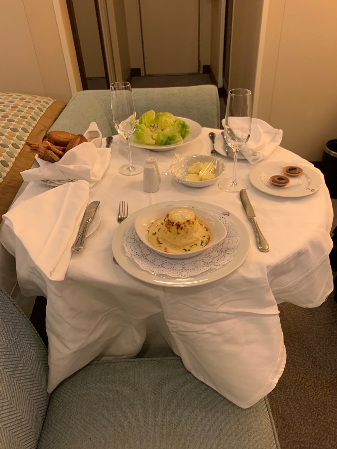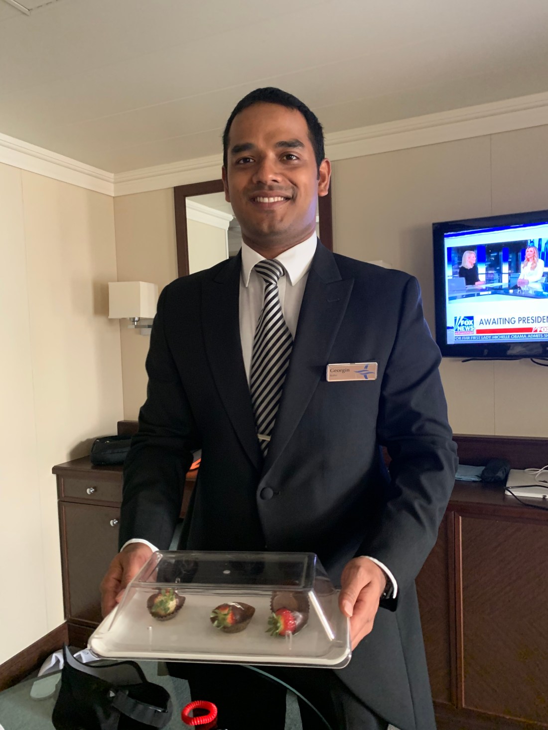 Tonight we decided to have dinner in our room catered by our butler, Georgin, from India, and the restaurant Jacques which is named after the famous chef Jaques Pepin.