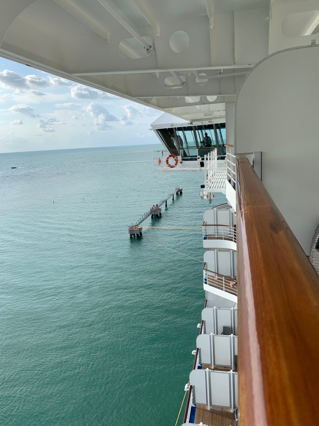 We were the last tour back to the ship and once we were onboard we left Belize. Patricia watched as the ship pulled away from the dock.