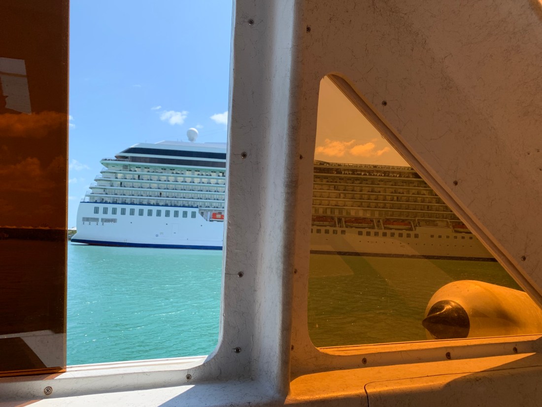 A sight that we think about and dread to see was an ambulance by the ships entrance. They were wheeling off one of the guests on a stretcher and his wife was walking behind him. The captain and some of the crew walked out with him. It’s bad enough in the USA if you have an emergency but in the Caribbean countries and Mexico with faraway hospitals it could be even more life-threatening. Our prayers are with him and his family.