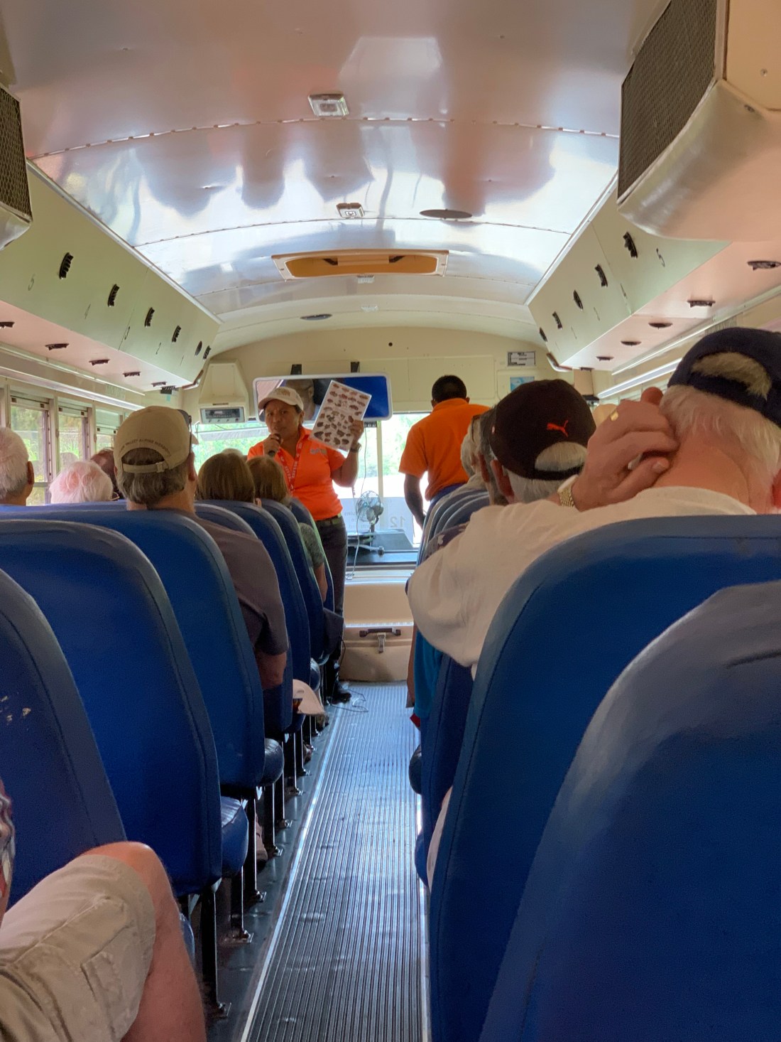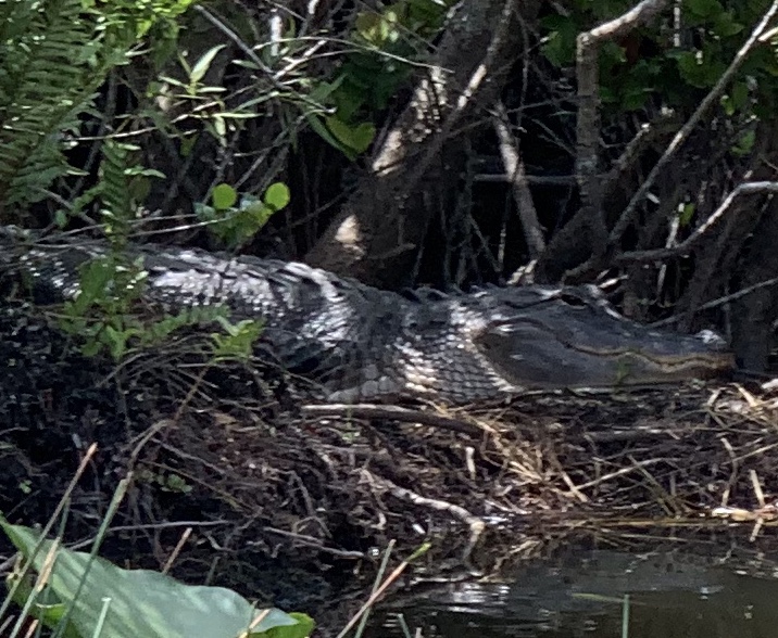 We got back on the bus for a drive to visit the Everglades Safari Park and ride an airboat which was loud and fast for a 30 minute tour. We explored nature’s River of Grass on an Eco-Adventure tour. Our guide described to us the wonders of this unique ecosystem and the native and exotic wildlife that inhabit it. We were on the hunt for alligators and found a few to look at.