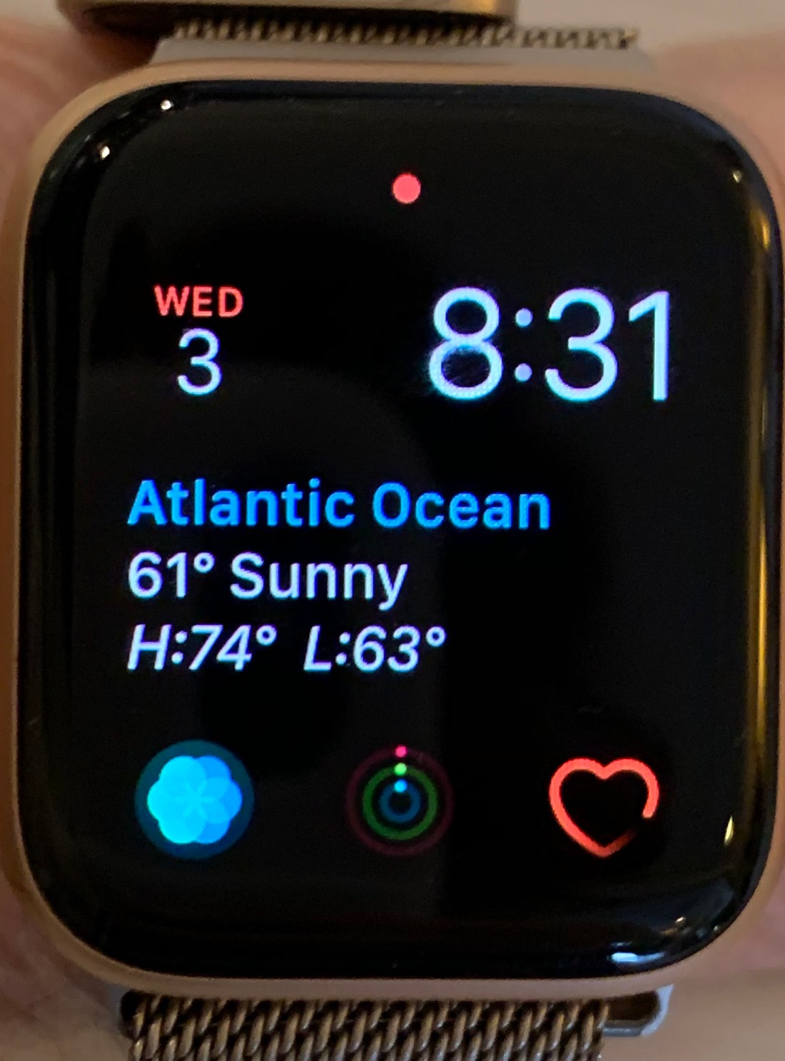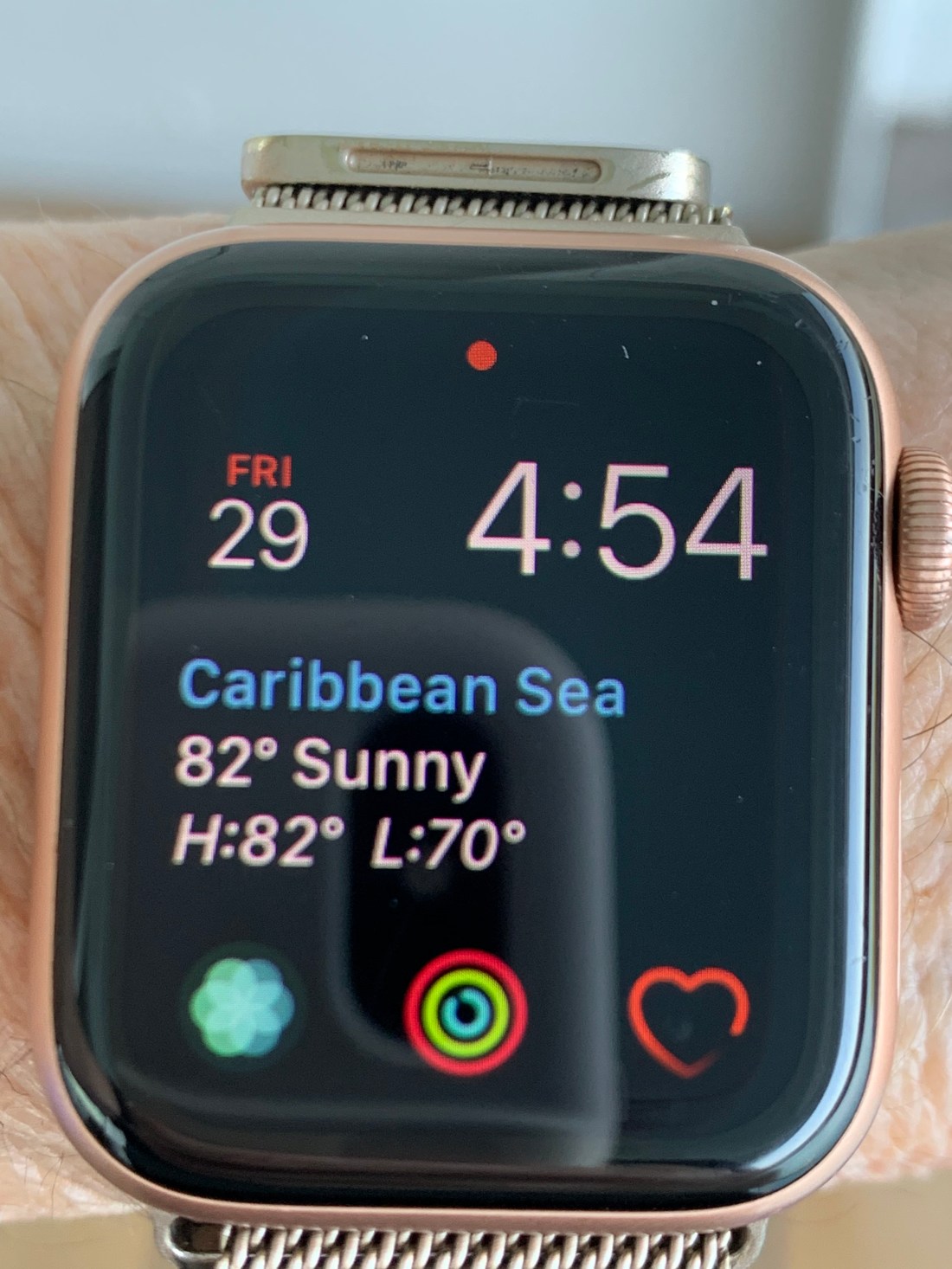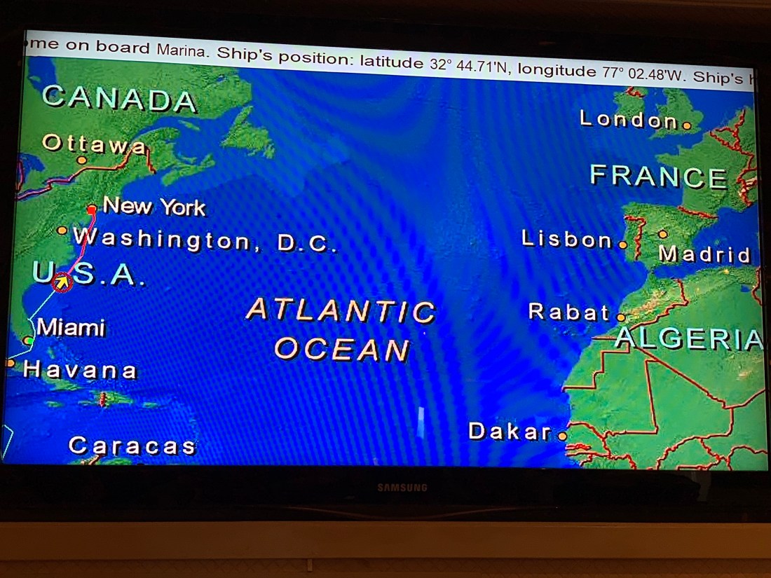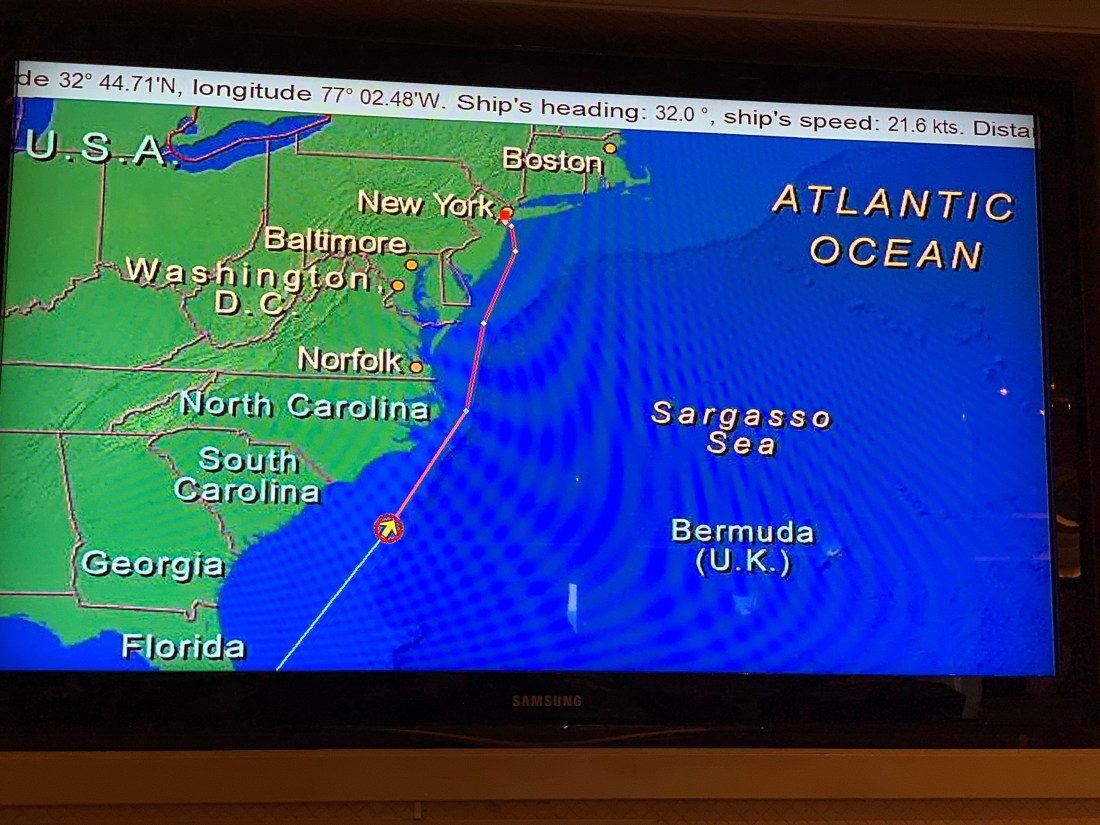 This morning we woke up to calm seas and on our way to New York. We’ve had a hard time getting internet and see my watch couldn’t even connect for the location and weather today.