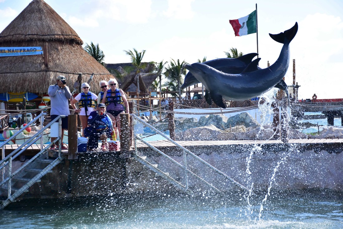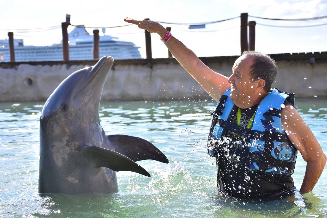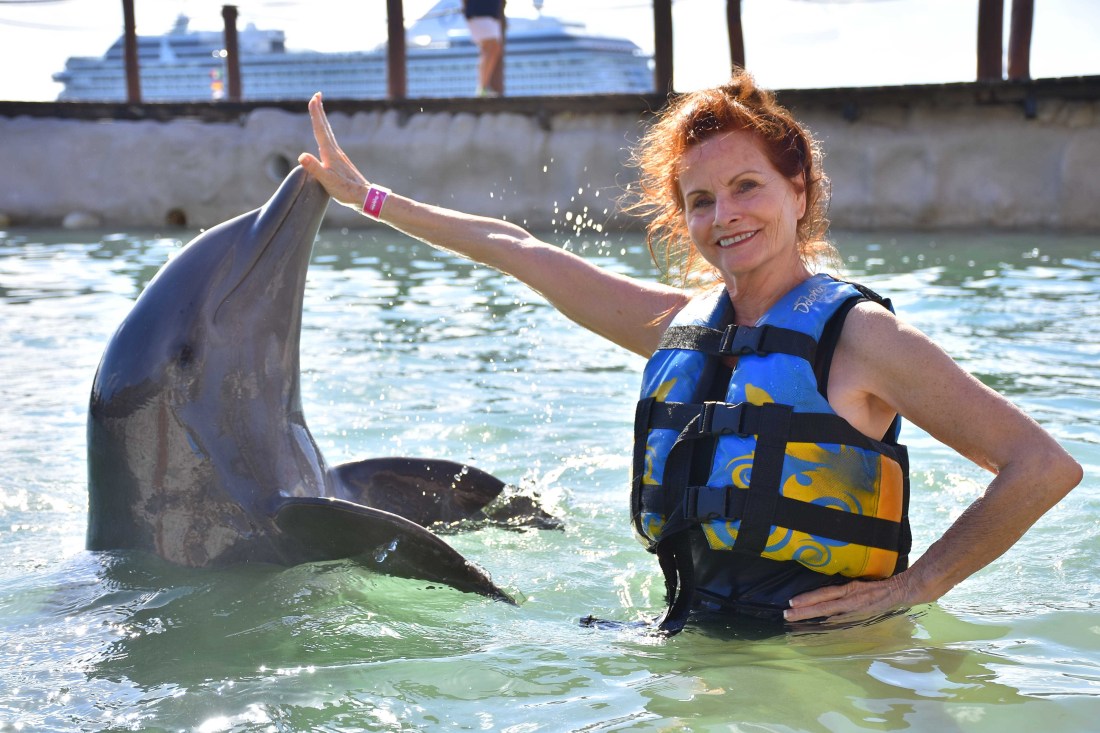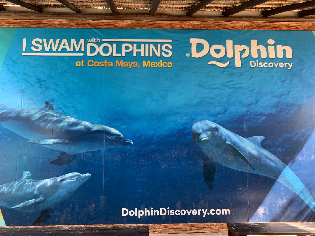 Our tour today was the Dolphin Encounter. Because we had to meet in the Marina lounge by 8:00 AM to get our tour number we skipped breakfast. Ha!