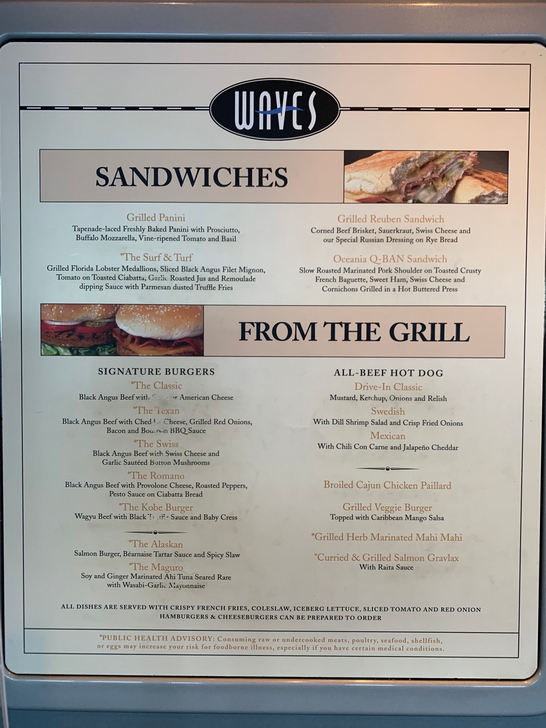 When it came time for lunch we were hungry so we went to the outdoor Waves Grill. Jim had a hamburger, coleslaw, french fries with a chocolate shake. Patricia had a Q-ban sandwich which she thought was something totally different with french fries and ice tea. Dessert was a scoop of chocolate ice cream with mini chips on top. Somehow we were so hungry and got so excited to eat our food that we forgot to take a picture. Ha Ha!
