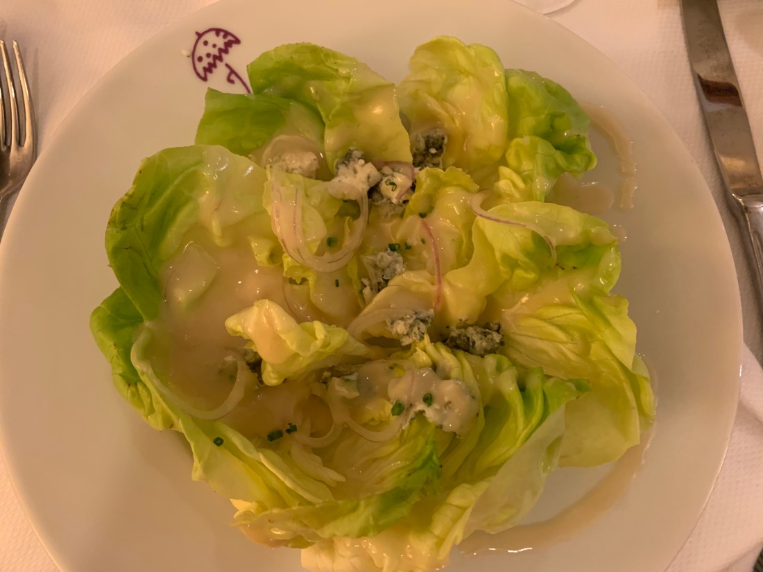 Patrica had her favorite heart of Boston lettuce with shallots and roquefort blue cheese salad.