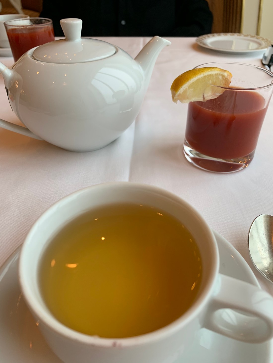 We had breakfast at the Grand Dining Room. Jim had the canyon ranch special which was orange juice, whole wheat blueberry pancakes, chicken sausage and a brioche with black coffee. Patricia had tomato juice, and a special lemon custard waffle which was fantastic. She also enjoyed her pot of green tea.