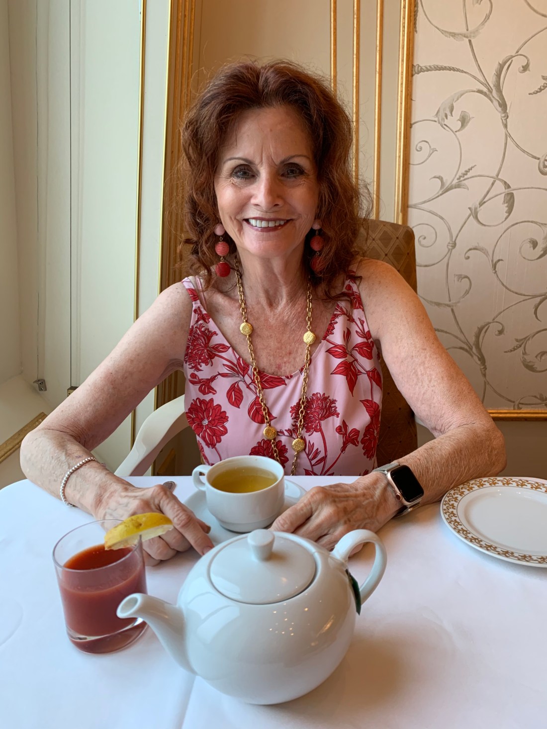 When we were getting our coffee and tea served to us Patricia moved her hand and knocked over her beautiful flute of champagne which was still half full and broke the stem. Jim said Patricia had too much champagne and we both laughed. Jim had a decaffeinated Americano coffee and Patricia had a pot of chamomile tea to end the evening.