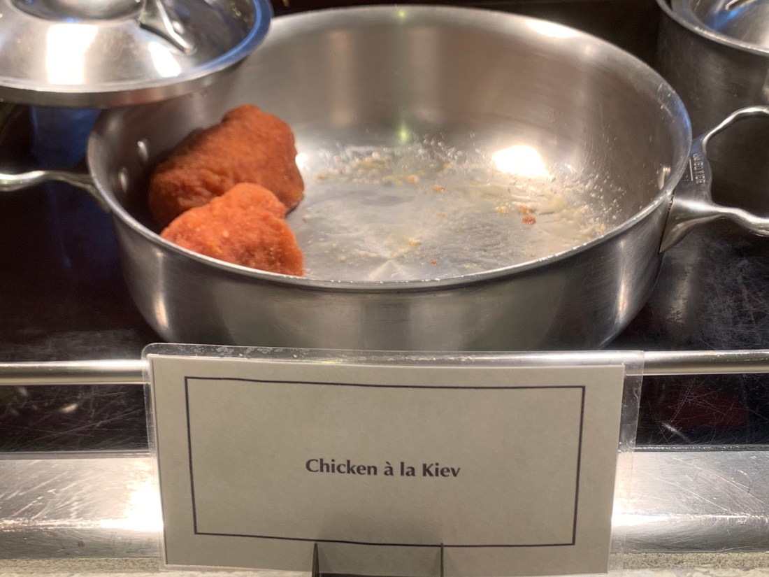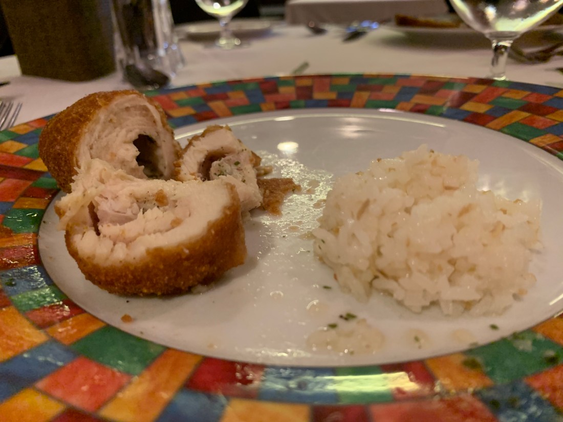 We had dinner at the Terrace Cafe. Jim had beef wellington and mashed potatoes and gravy. Patricia had chicken a la Kiev and garlic rice.
