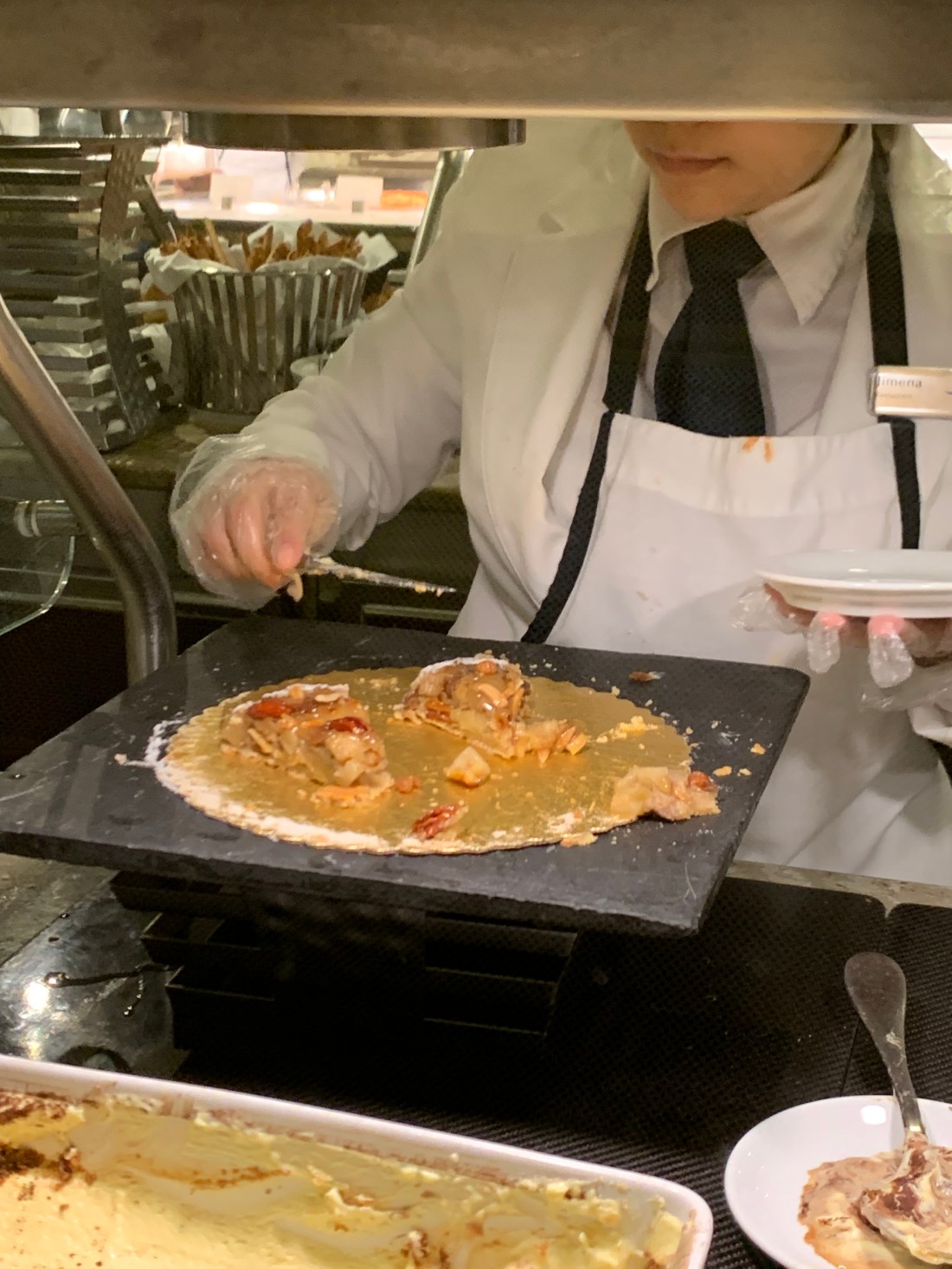 At Noon we went to a restaurant called The Knife which was a Argentinean buffet. There was various salads and many things to eat including chicken, meat and sausage.