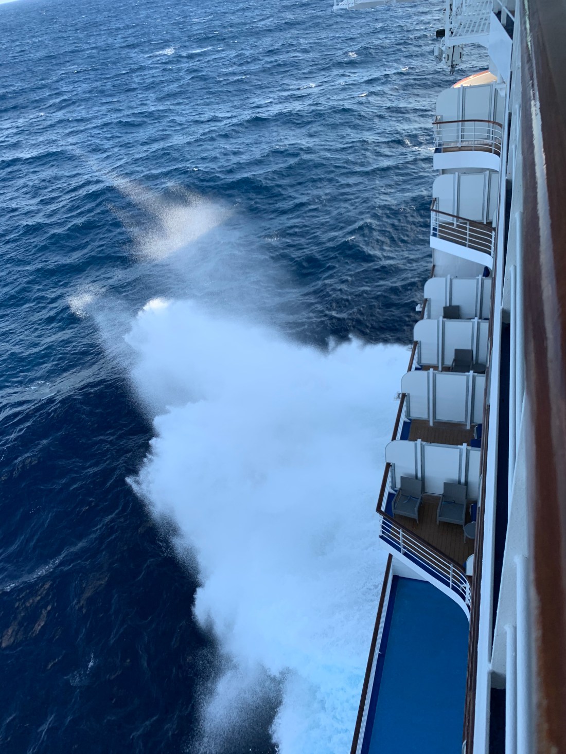 Due to the storm that made us miss the Norfork, Virginia Port we had rocky seas last night. The rocky seas are continuing today.